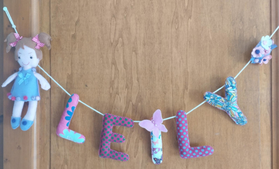 Banderole avec poupée 19 septembre 2023 Viviane Copines, Les créations de Mireille 4 Une deuxième version demandée par la grand mère qui est nounou pour la chambre de Leily.