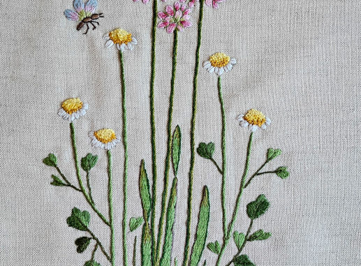 Petite broderie d’après un modèle de d’Ana Mallah, qui parait simple à première vue mais qui est pleine de subtilités.